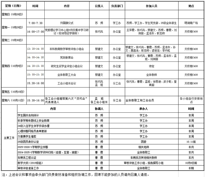 2025-2026-1学期第五、六周工作安排